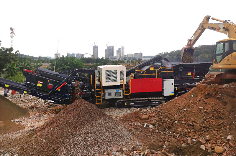 那么如何生產(chǎn),選用什么設(shè)備好呢?建筑垃圾集中在城市周邊,如果建設(shè)固定式生產(chǎn)線,就屬于工廠,需要經(jīng)過環(huán)保等部門的審批,往往周期長、建設(shè)難度大、成本高,物料轉(zhuǎn)場的運(yùn)輸成本高。再者,很多時候拆遷產(chǎn)生的建筑垃圾分布不集中,作業(yè)環(huán)境復(fù)雜,綜合考慮,采用移動式破碎篩分站是最佳的選擇。